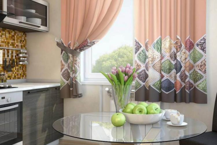 Самое важное, что на кухне ничего не должно вам мешать. Поэтому если шторы будут сильно длинными, то это создаст неудобство. Самым лучшим вариантом для окон будут ролл-шторы, т.к. они регулируются по высоте, мало пачкаются, и при этом не будут закрывать подоконник.